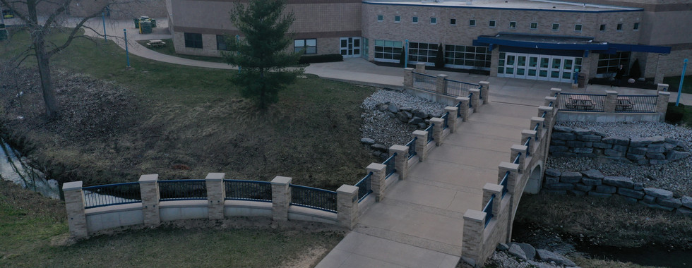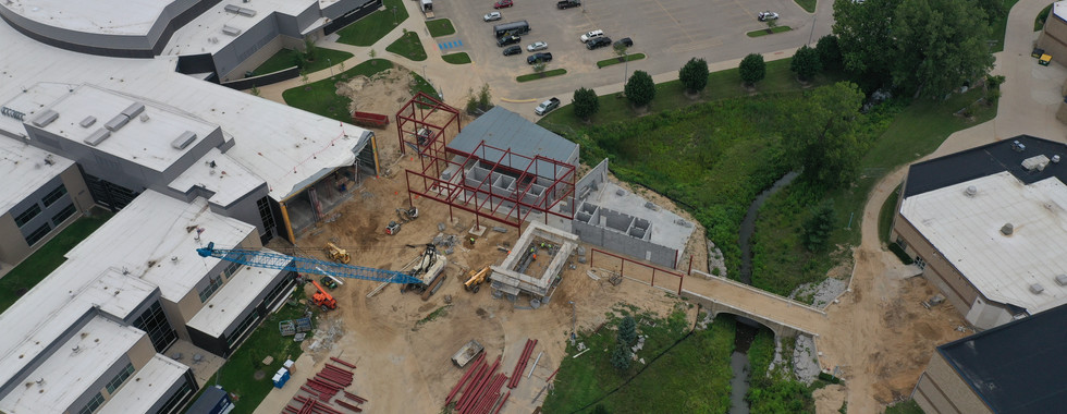 Work continues at the Hudsonville High School and Freshman Campus on the enclosed Connector that will bring these two buildings together. Previously the bridge allowed students to cross the creek outside to get from one building to the next. The New Connector encloses the bridge structure and will allow students to make the same crossing without leaving the building. The new connection is not just a hallway over the creek though, it will also include the new main entry, offices for staff, and six new classrooms for instruction. This Connector is a complex masonry and steel structure that will combine the High School and Freshman Campus into one building, it is scheduled to be under construction into 2023.