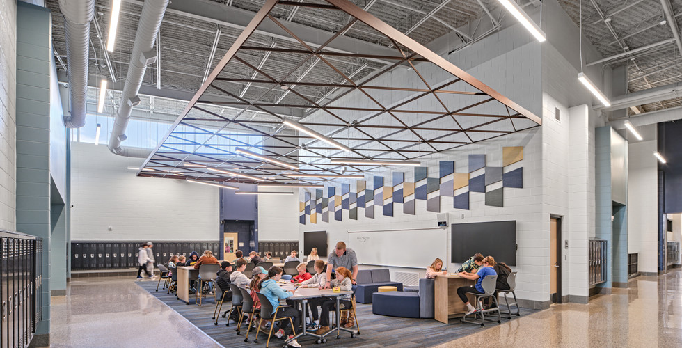 The 5/6 Building @ Georgetown is complete, and students have enjoyed moving into their new school! It includes learning spaces with integrated technology and flexible furniture, a secure entry connecting the academic areas, a cafeteria, a gymnasium, and centralized extended learning areas for collaboration spaces.